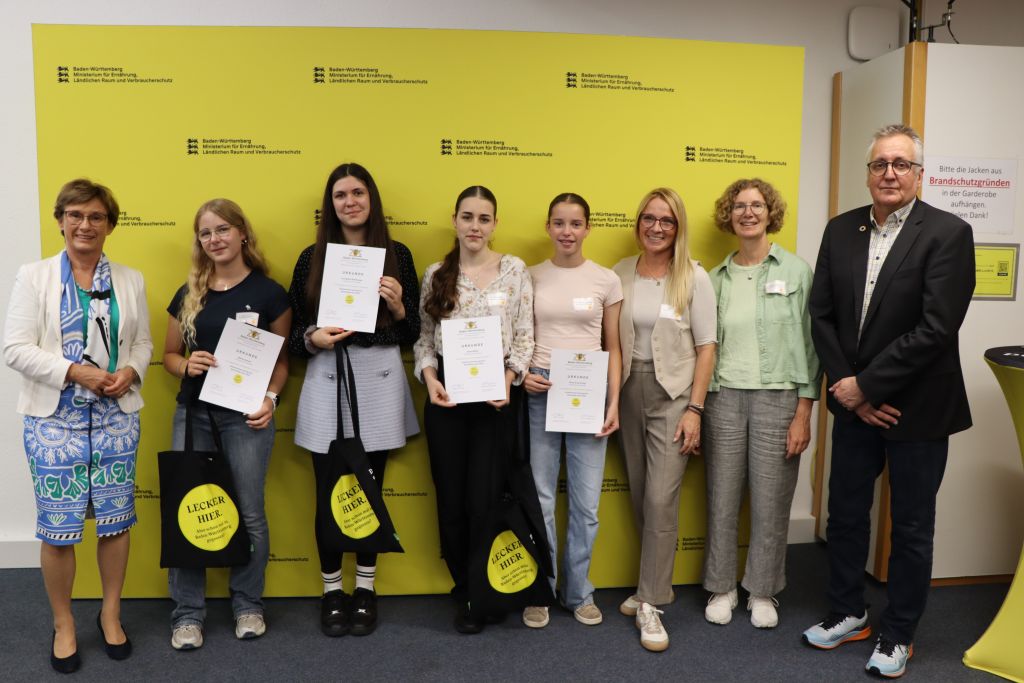 Zur feierlichen Urkundenübergabe reisten vier Schülerinnen des Bildungszentrums Bodnegg am 22. Juli nach Stuttgart. Dort erhielten sie ihre Urkunden von der Staatssekretärin im Ministerium für Ernährung, ländlichen Raum und Verbraucherschutz, Frau Sabine Kurtz und dem Staatssekretär im Ministerium Kultus, Jugend und Sport, Herrn Volker Schebesta. Nach der Zeremonie nahmen die Schülerinnen an einer nachhaltigen Stadtführung in Stuttgart teil.